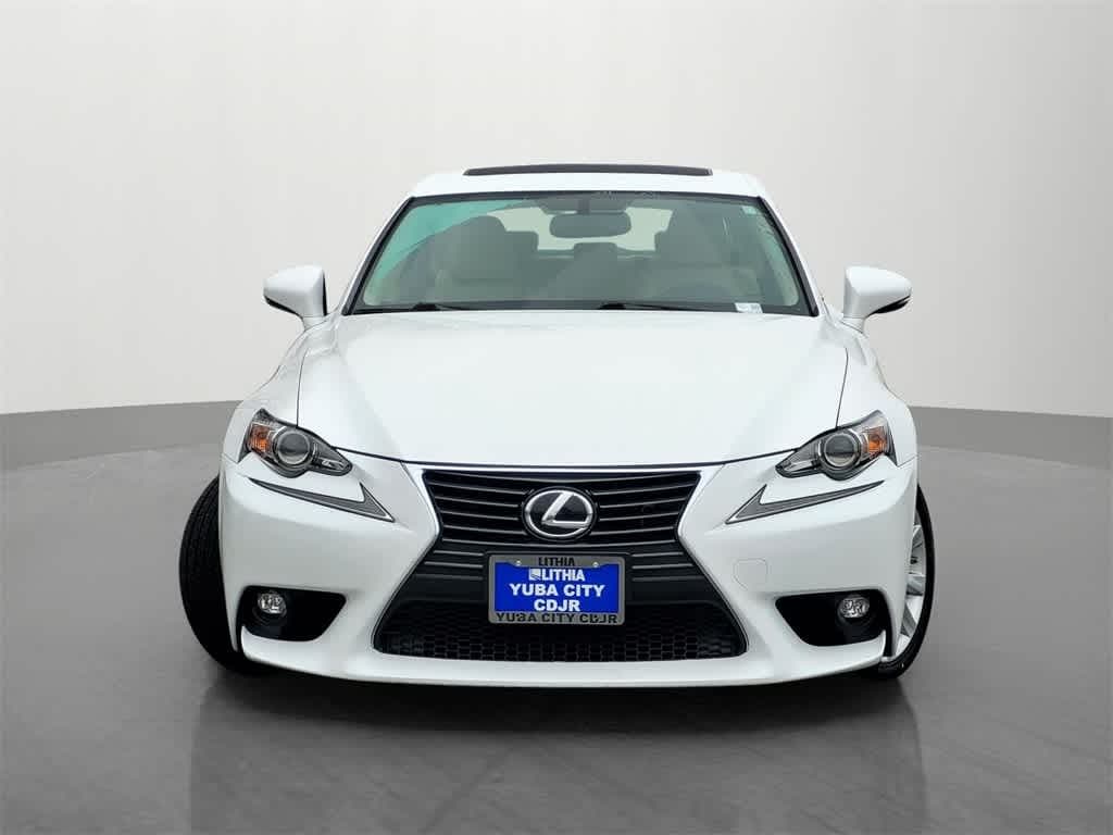 Yuba City Chrysler Dodge Jeep RAM is pleased to present this 2015 Lexus IS 250 for sale as part of our hand-selected preowned lineup. This vehicle is finished in the White exterior and Blk/Black interior. Factory options include: Blk/Black Artificial Leather, 17 x 7.5 10-Spoke Aluminum Alloy Wheels, 4-Wheel Disc Brakes, 8 Speakers, ABS brakes, Air Conditioning, Alloy wheels, AM/FM radio: SiriusXM, Auto-dimming Rear-View mirror, Automatic temperature control, Brake assist, Bumpers: body-color, CD player, Compass, Delay-off headlights, Driver door bin, Driver vanity mirror, Dual front impact airbags, Dual front side impact airbags, Electronic Stability Control, Emergency communication system: Safety Connect, F Sport Nuluxe Seat Trim, Four wheel independent suspension, Front anti-roll bar, Front Bucket Seats, Front Center Armrest, Front dual zone A/C, Front fog lights, Front Power Bucket Seats, Front reading lights, Fully automatic headlights, Garage door transmitter: HomeLink, Heated & Ventilated Front Sport Seats, Heated door mirrors, High intensity discharge headlights: Bi-Xenon, Illuminated entry, Knee airbag, Lexus Premium Audio System, Low tire pressure warning, NuLuxe Seat Trim, Occupant sensing airbag, Outside temperature display, Overhead airbag, Overhead console, Panic alarm, Passenger door bin, Passenger vanity mirror, Power door mirrors, Power driver seat, Power moonroof, Power passenger seat, Power steering, Power windows, Radio data system, Rear anti-roll bar, Rear reading lights, Rear seat center armrest, Rear side impact airbag, Rear window defroster, Remote keyless entry, Security system, Speed control, Speed-sensing steering, Speed-Sensitive Wipers, Split folding rear seat, Steering wheel mounted audio controls, Tachometer, Telescoping steering wheel, Tilt steering wheel, Traction control, Trip computer, Turn signal indicator mirrors, and Variably intermittent wipers